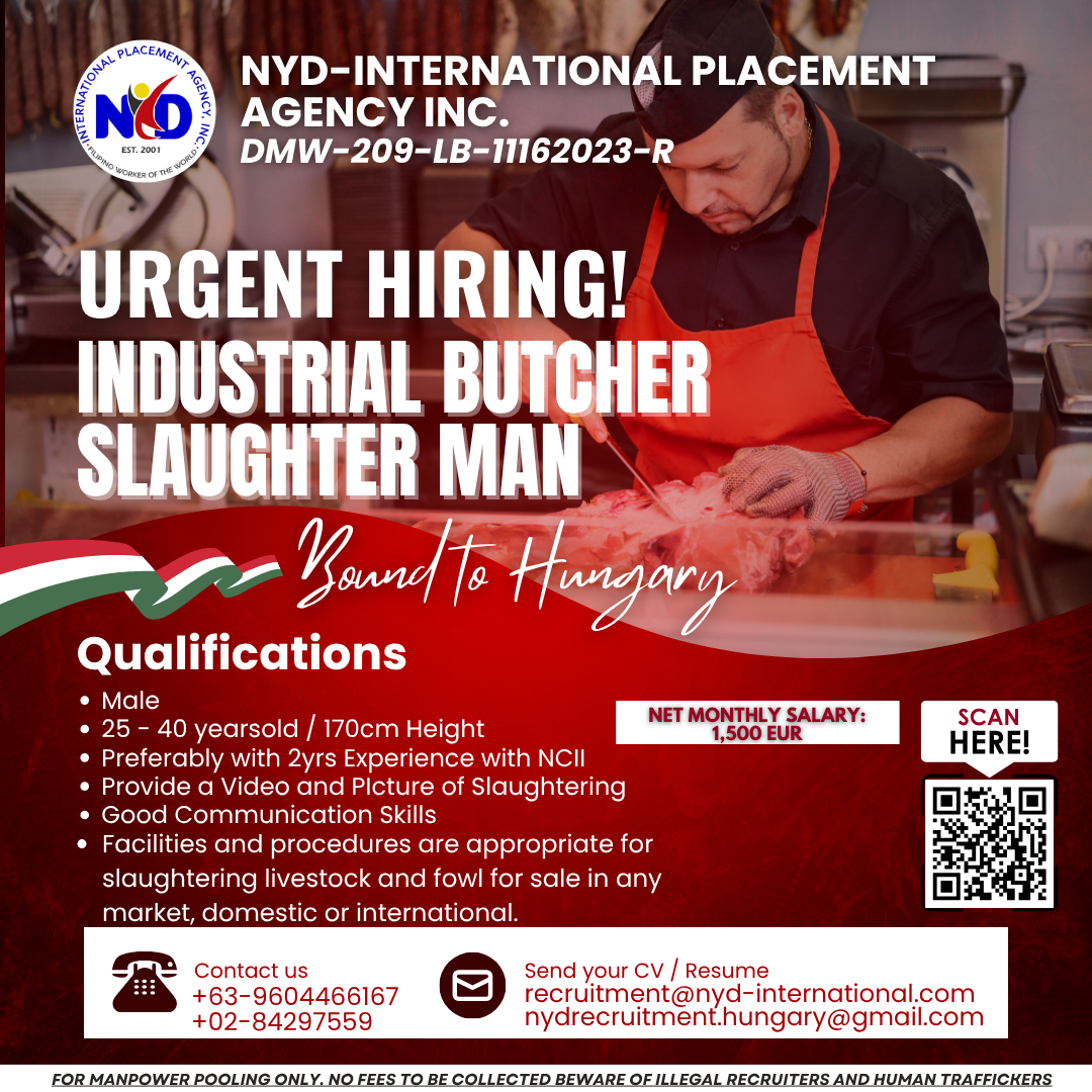 𝘽𝙊𝙐𝙉𝘿 𝙏𝙊 𝙃𝙐𝙉𝙂𝘼𝙍𝙔! 𝙐𝙍𝙂𝙀𝙉𝙏 𝙃𝙄𝙍𝙄𝙉𝙂! 🔈 𝙄𝙉𝘿𝙐𝙎𝙏𝙍𝙄𝘼𝙇 𝘽𝙐𝙏𝘾𝙃𝙀𝙍 / 𝙎𝙇𝘼𝙐𝙂𝙃𝙏𝙀𝙍 𝙈𝘼𝙉!